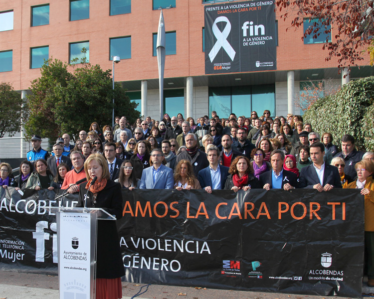 Esta mañana, jóvenes de Alcobendas, representantes de la Corporación Municipal, trabajadores municipales y vecinas y vecinos se han dado cita en la Plaza Mayor para leer un manifiesto contra la violencia de género y guardar un minuto de silencio por las victimas de esta lacra social.