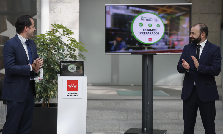 La Comunidad de Madrid ha creado Garantía.Madrid, un sello de calidad que tiene como objetivo certificar y fomentar las buenas prácticas que adopten las empresas de la región para proteger a sus trabajadores y clientes de posibles riesgos asociados al coronavirus. Así lo ha señalado el vicepresidente, consejero de Deportes, Transparencia y portavoz del Gobierno regional, Ignacio Aguado, que ha presentado esta iniciativa junto al consejero de Economía, Empleo y Competitividad, Manuel Giménez, y el director de la Fundación Madrid por la Excelencia, Félix Losada.