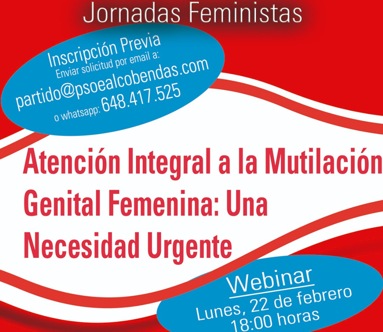 La jornada sobre la mutilación femenina está prevista para el próximo 22 de febrero, a las 18 horas. Es necesaria la inscripción previa vía email (partido@psoealcobendas.com) o whatsapp (648.417.525).