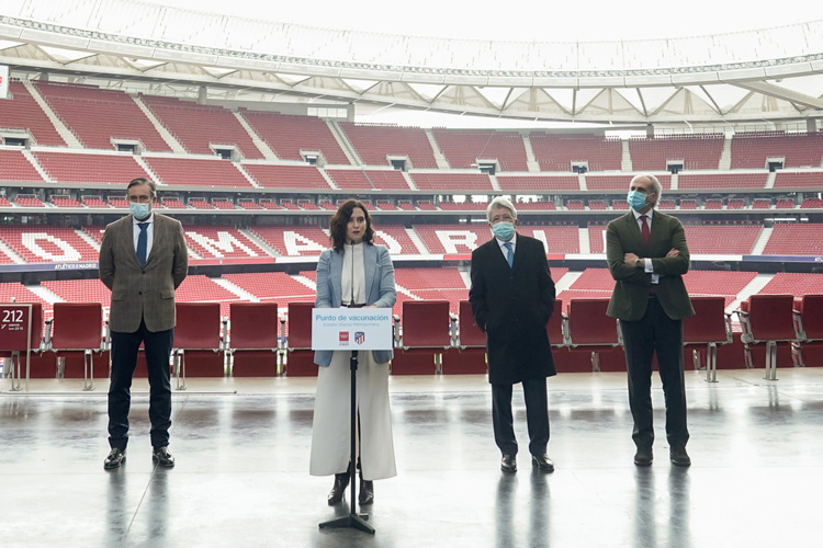 La presidenta de la Comunidad de Madrid, Isabel Díaz Ayuso, ha visitado hoy el dispositivo de vacunación en el Estadio Wanda Metropolitano