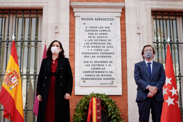 Díaz Ayuso y Martínez-Almeida depositan una corona de laurel en recuerdo a las Víctimas y a los Servicios de Emergencias que intervinieron en los atentados