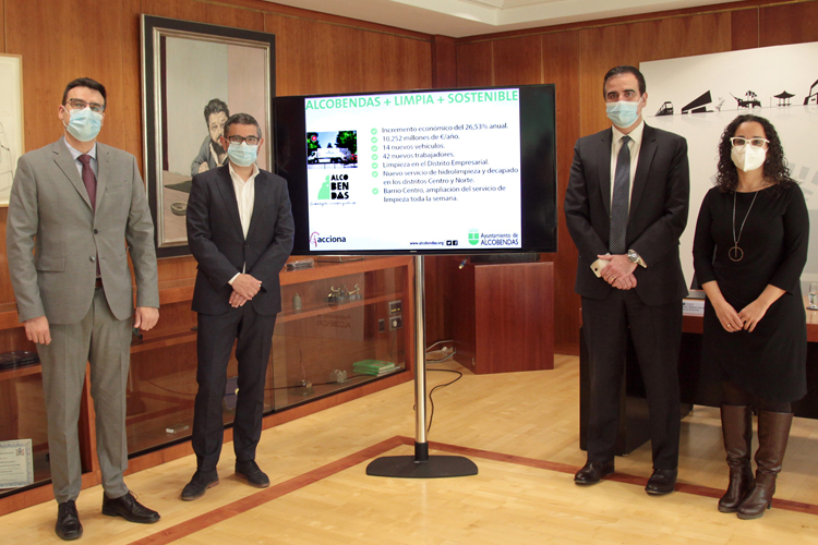 Alcobendas amplía el contrato de limpieza de la ciudad con la empresa Acciona con un incremento económico de más de dos millones de euros al año, al pasar de ocho de canon anual a más de 10,2. El contrato, ratificado hoy por el alcalde de Alcobendas, Rafael Sánchez Acera (PSOE), y el director de Servicios Urbanos y Medio Ambiente de Acciona, Francisco Javier López Buciega, con la presencia de la concejala del área, Cristina Martínez (PSOE), y del vicealcalde de Alcobendas, Miguel Ángel Arranz (Cs), supone el incremento de los servicios existentes y la creación de nuevas acciones para mejorar la limpieza de todos los barrios.