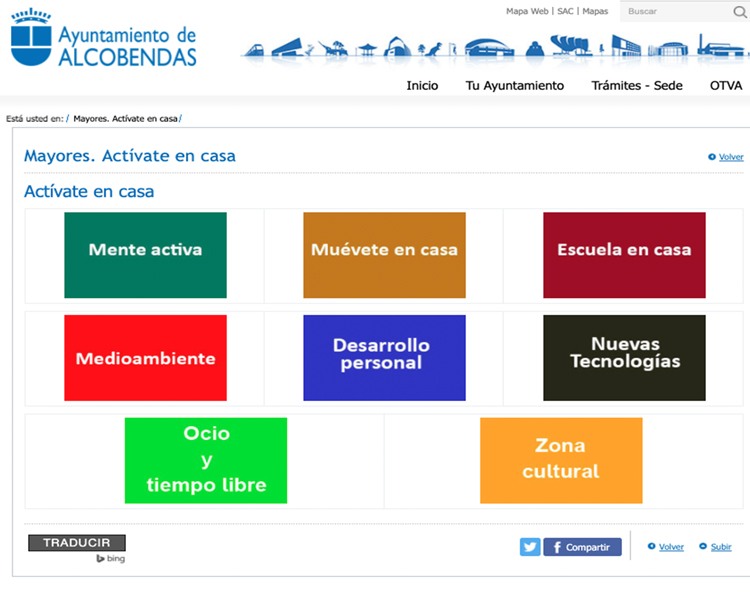 El espacio del Servicio de Personas Mayores en la web municipal se ha renovado incluyendo el apartado Actívate en casa, creado con motivo del confinamiento para mantener unos hábitos saludables, evitando el sedentarismo y la inactividad. Ofrece materiales y cuadernos para trabajar desde casa y poder incluir en la rutina cotidiana un espacio para la activación física y mental e instaurar nuevos aprendizajes en el ámbito cultural o de las nuevas tecnologías.