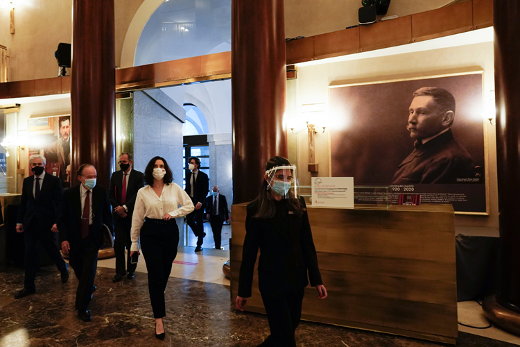 La presidenta en funciones de la Comunidad de Madrid, Isabel Díaz Ayuso, ha participado hoy en la reunión del Patronato de la Fundación Teatro Real y ha resaltado el esfuerzo que la institución realiza por mantener su actividad desde que se convirtiera, el pasado mes de julio, en el primer gran teatro del mundo en reabrir sus puertas y ofrecer una programación continuada adaptada a las medidas sanitarias por COVID-19. Además, Díaz Ayuso ha destacado los valores artísticos y culturales que propician que el Teatro Real haya obtenido el premio a la mejor compañía de ópera del mundo en los Internacional Opera Award 2021.
