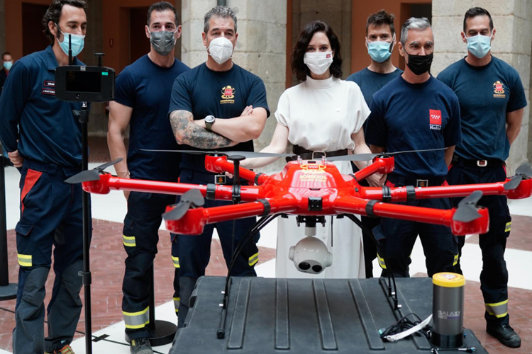 Entre las novedades, Díaz Ayuso ha destacado la incorporación de una pionera Unidad de Drones del Cuerpo de Bomberos de la Comunidad de Madrid que el Gobierno regional creó a finales de 2019. Está formada por 5 bomberos pilotos y un oficial, los cuales trabajan con 5 drones: 2 pesados (hexacóptero, 6 motores y 6 hélices) y 3 ligeros (cuadricóptero, 4 motores y 4 hélices). Su misión será sustituir en determinados casos, especialmente durante la noche, a los medios aéreos de extinción de incendios forestales.