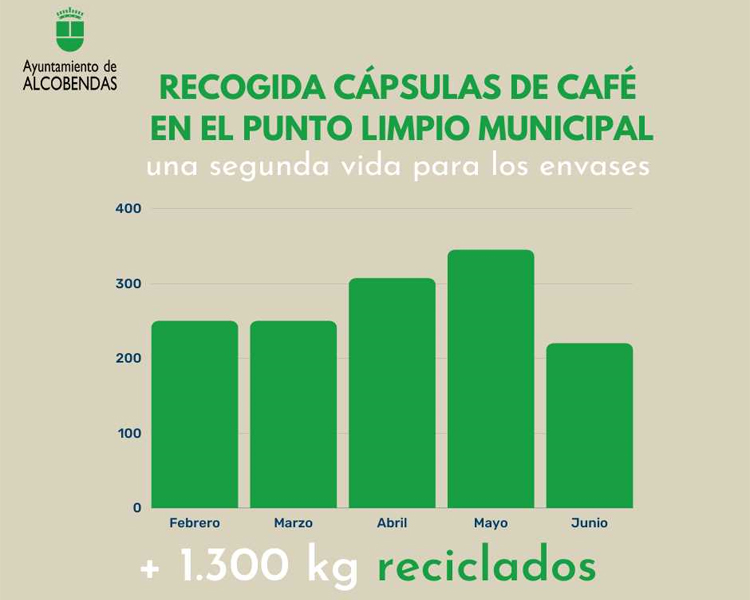 Más de 1.300 kilos de cápsulas de café se han recogido para su reciclaje en los depósitos instalados al efecto en el Punto Limpio de Alcobendas en los primeros meses del año. Desde que el pasado mes de febrero se instaurara este servicio, los vecinos y vecinas de la localidad han depositado un total de 1.372 kilogramos de cápsulas monodosis de café, tanto de plástico como de aluminio, que ahora podrán ser recicladas por la empresa Nestlé, que es la que se ocupa de su tratamiento posterior, gracias a un convenio de colaboración firmado con el Ayuntamiento.