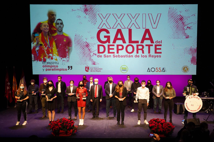 En el escenario del Teatro Municipal “Adolfo Marsillach” los deportistas más destacados y los ganadores del Certamen Paco Sánchez al mejor deportista de San Sebastián de los Reyes en 2020 recibieron ayer sus galardones en el transcurso de la XXXIV Gala del Deporte, celebrada con las medidas de seguridad sanitarias que impone la pandemia Covid-19 y bajo el eslogan “El espíritu olímpico y paralímpico”.
