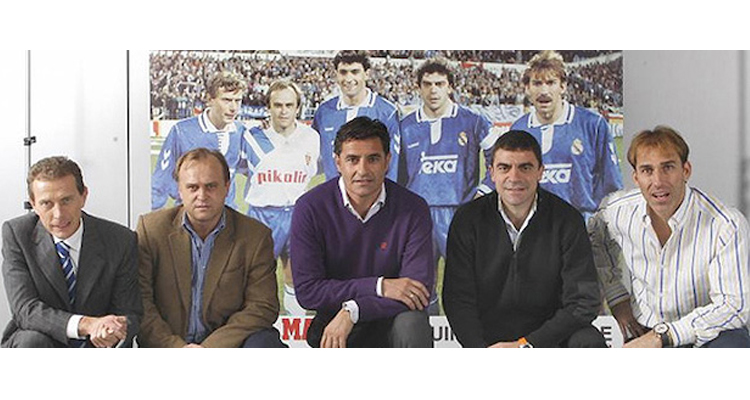 Estuvo formada por Emilio Butragueño, Manuel Sanchís, José Miguel González Míchel, Rafael Martín Vázquez y Miguel Pardeza, todos ellos procedentes de la cantera madridista e integrantes del equipo que a partir de 1986 –hace ya 35 años- se alzó con cinco títulos de Liga de forma consecutiva, una proeza que ningún otro conjunto ha logrado. Además, se da la circunstancia de que habían ganado en 1984 con el Castilla –segundo equipo del Real Madrid- el campeonato de Liga de la Segunda División.