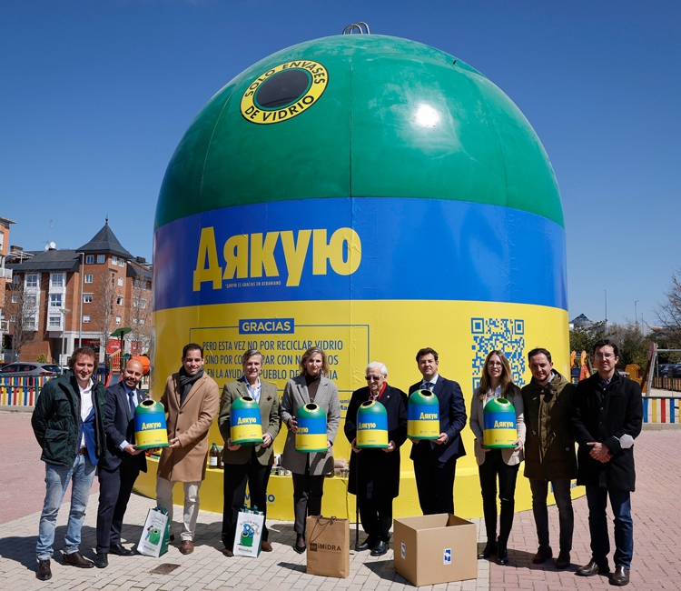 La Comunidad de Madrid colabora con Ecovidrio y Mensajeros de la Paz en una campaña solidaria para ayudar los refugiados ucranianos que llegan a España huyendo de su país. Cualquier persona podrá depositar alimentos no perecederos, entre los días 6 y 12 de abril, en el contenedor más grande del mundo –ocho metros de alto–, instalado en la calle Jacinto Benavente esquina con Camilo José Cela de Las Rozas de Madrid.