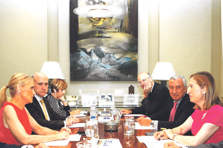 Esta es una de las principales conclusiones del encuentro mantenido entre la presidenta del Ejecutivo autonómico y la ministra de Fomento, Ana Pastor, en el que se han abordado las nuevas infraestructuras para Madrid, como la conexión de Cercanías con el aeropuerto de Barajas, también compromiso electoral, que estará en funcionamiento antes de final de año, una vez finalizada en septiembre la obra civil.