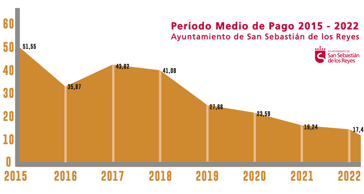 Con estos resultados en 2022 se confirma la buena gestión de la Delegación y marca una tendencia a la baja en el tiempo de realización de los pagos del Ayuntamiento a los profesionales y empresas que le ofrecen sus servicios. De esta forma, la media del PMP en el ejercicio 2019 fue de 27,66 días y en 2020 se situó en 23,5 días, una clara tendencia de mejora en la gestión municipal.