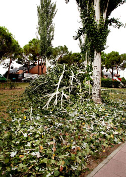 Los agentes de la Policía Local del turno de ayer domingo renunciaron a su descanso. Hasta 17 intervenciones (alguna con los servicios de Bomberos) se realizaron ayer en las calles de Alcobendas. Entre los incidentes, vallas de obra caídas, una antena y un cable de telefonía invadiendo la calzada, ramas de distintos tamaños caídas en la Avenida Olímpica, calle Doctor Casimiro Morcillo, en la A1 (km 14.500), en la Avenida de Fuencarral, calle Cantabria, calle Begonia, Bulevar Salvador Allende, Avenida de Valdelaparra, árboles caídos en las calles Nardo, Camino del Golf, Conde de los Gaitanes, Camino de Hoyarrasa, Vereda de los Álamos, Cuestablanca, Parque de la Universidad de Madrid y en algunas parcelas municipales sin acceso público) además de un chopo quedó inclinado sobre otro en el Parque Víctimas del Terrorismo sin riesgo de caída pero que deberá ser retirado, o el desprendimiento de un trozo de cornisa en un edificio de la Plaza de la Encina. También cayó la bandera de España de la Glorieta de la Menina que ha sido retirada y será repuesta.Las actuaciones priorizaron aquellas que podían suponer un riesgo para la seguridad de las personas o que incidían en el tráfico.