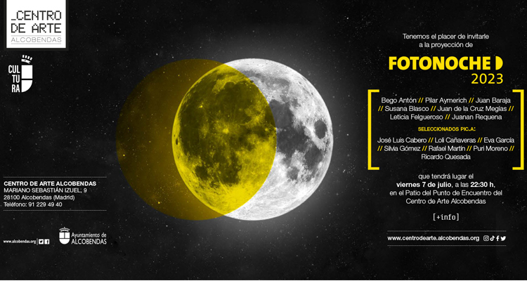 Hoy viernes, 7 de julio, a las 22:30 , en el Centro de Arte Alcobendas, tendrá lugar una de las citas culturales clásicas del verano de Alcobendas. Se trata de Fotonoche. La actividad consistirá en una proyección de imágenes al aire libre, en el patio del Punto de encuentro en la que se podrá contemplar la obra tanto de artistas consagrados como de fotógrafos noveles.
