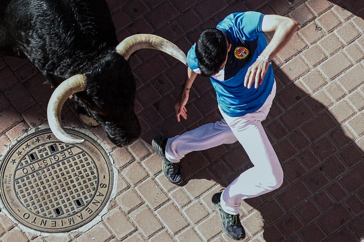 11:15 horas. Arrebato final último encierro, en la curva de la calle Postas con Real. Organizado por Pirosanse.