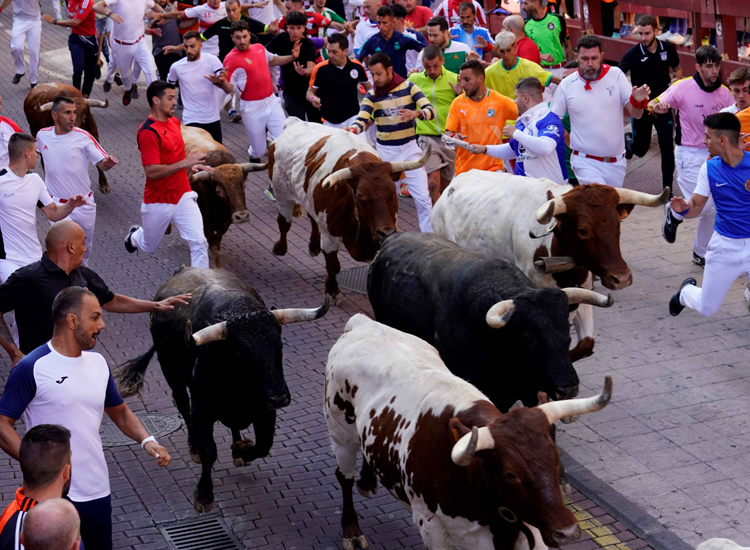 Tras salir de corrales, uno de ellos se ha quedado rezagado desde la calle Postas, lo que ha permitido a numerosos corredores entrar en astas, dando lugar a espectaculares carreras. La manada se ha reunido en calle Real y ya en la curva de Estafeta, el mismo toro se ha separado creando momentos de peligro y emoción. “Este tipo de encierros brinda carreras con chispa y permite a los corredores disfrutar de nuestro encierro”, afirma el concejal de Festejos, Carlos Bolarín.