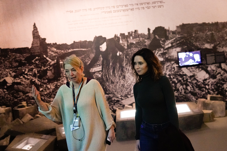 La Presidenta de la Comunidad de Madrid, Isabel Díaz Ayuso, ha visitado hoy, en Varsovia, el Museo de Historia de los Judíos Polacos POLIN, ubicado en el barrio convertido por los nazis durante la Segunda Guerra Mundial en el gueto de la capital de este país. La jefa del Ejecutivo autonómico ha conocido la rica cultura y patrimonio que alberga este edificio, que celebra en 2024 su décimo aniversario, y que hace un recorrido por los 1.000 años que pasaron los judíos en esta zona, representando un 10% de su población.