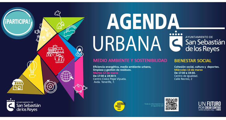 El citado Plan, con la denominación “Agenda Urbana de San Sebastián de los Reyes”, busca transformar las principales áreas de la ciudad a medio y largo plazo. Este miércoles tiene lugar la sesión sobre bienestar social, a las 17:30 horas en el centro de Igualdad (calle Recreo, 2). Están llamados a acudir todos los vecinos, asociaciones y entidades de la localidad relacionados o interesados con la cohesión social, la cultura y el deporte.