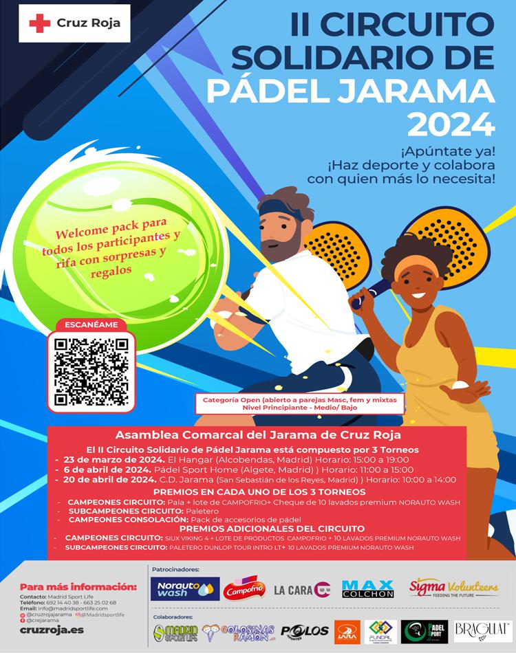 Después del éxito de la celebración de la primera edición , el año pasado, la Asamblea Comarcal de Jarama de Cruz Roja Española, en la edición anterior se recaudaron 11.345 euros, pone en marcha la segunda edición con la celebración de 3 torneos en las localidades de Alcobendas, Algete y San Sebastián de los Reyes.