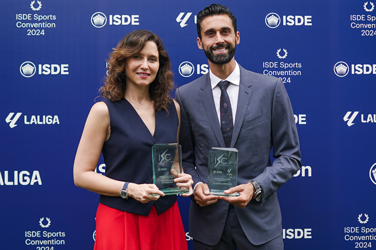 La Presidenta de la Comunidad de Madrid, Isabel Díaz Ayuso, ha recogido hoy el premio a la Trayectoria Institucional Deportiva 2024, que concede el Instituto Superior de Derecho y Economía, en el marco de la V ISDE Sports Convention, el congreso internacional referente en el ámbito jurídico y la industria del deporte, que se ha celebrado en la sede de este organismo en la capital. En concreto, el Ejecutivo autonómico ha sido reconocido por “haber convertido a la región en el principal reclamo turístico, económico y deportivo de España”.