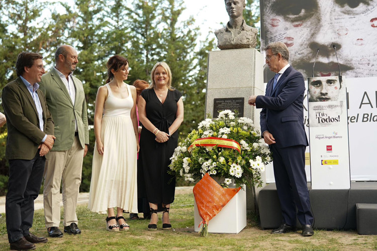 La Presidenta de la Comunidad de Madrid, Isabel Díaz Ayuso, recordó ayer la figura de Miguel Ángel Blanco en el 27º aniversario de su asesinato a menos de ETA y señaló que “es hora de volver a decir basta ya” para que la banda terrorista y los “fanáticos cómplices que los rodean no se salgan con la suya”. “Que este homenaje sea el principio de la recuperación del espíritu que nunca deberíamos haber perdido”, señaló en el tradicional acto celebrado en los jardines del madrileño distrito de Chamartín que llevan el nombre del Concejal de Ermua.