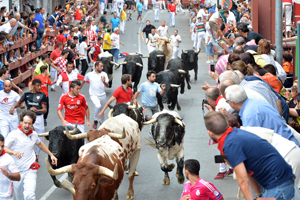 Los cinco toros de la ganadería salmantina de Ramón Flores, encaste Atanasio Fernández, y otro más de la cacereña de Ciriaco Toscano ofrecieron el más lento y complicado de los encierros celebrados hasta el momento en las Fiestas del Santísimo Cristo de los Remedios. Este quinto encierro, en el que han participado unos 1.500 corredores, se ha saldado con doce heridos de distinta consideración, la mayoría por traumatismos, “y uno de ellos ha sido atendido en el quirófano de la plaza de una herida grave por asta, tras una caída múltiple en la curva de Estafeta con la calle Real”, señala Pedro Martínez, responsable de Protección Civil. El encierro ha tenido una duración de 2:03 minutos, en los que la manada ha permanecido compacta y con los bueyes tirando de ella hasta la calle Real. “Han sido unos segundos más de lo que suele ser habitual con estos toros, más templados y de mayor tamaño que los de encierros anteriores, lo que ha permitido que los aficionados aprovecharan este tiempo para meterse y disfrutar de buenas carreras, especialmente en la calle Real, donde la manada ha roto”, dice Eduardo Flores, director de los encierros.