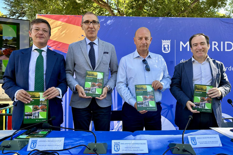 El Delegado de Urbanismo, Medio Ambiente y Movilidad, Borja Carabante, y el Concejal de Fuencarral-El Pardo y Concejal Delegado de Limpieza y Zonas Verdes, José Antonio Martínez Páramo, han participado en la presentación del libro Parques de Fuencarral-El Pardo, junto con sus autores, Antonio Morcillo San Juan, Subdirector General de Parques y Viveros, y Arturo Muñoz Catalán, Personal de la Dirección General de Gestión del Agua y Zonas Verdes del Ayuntamiento de Madrid. La obra, editada por el Ayuntamiento de Madrid, es un compendio que acerca a todos los madrileños el rico patrimonio de zonas verdes municipales del distrito.
