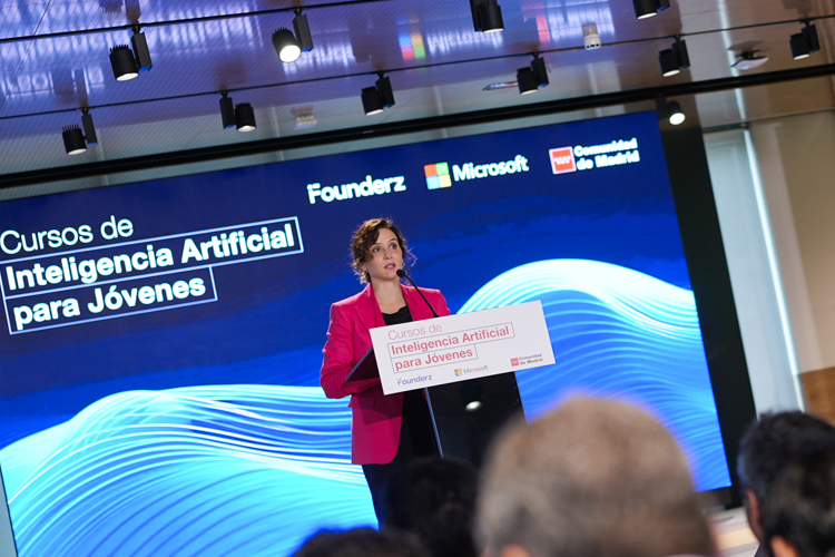 La Presidenta de la Comunidad de Madrid, Isabel Díaz Ayuso, ha presentado hoy los primeros cursos de Europa destinados a la formación en Inteligencia Artificial de 100.000 estudiantes madrileños. Con este programa, impulsado en colaboración con Microsoft y la escuela de negocios Founderz, Madrid será “la región europea con más personas formadas en esta tecnología”. “Imaginad el reto que supone y el polo de atracción para otras muchas”, ha señalado la presidenta.