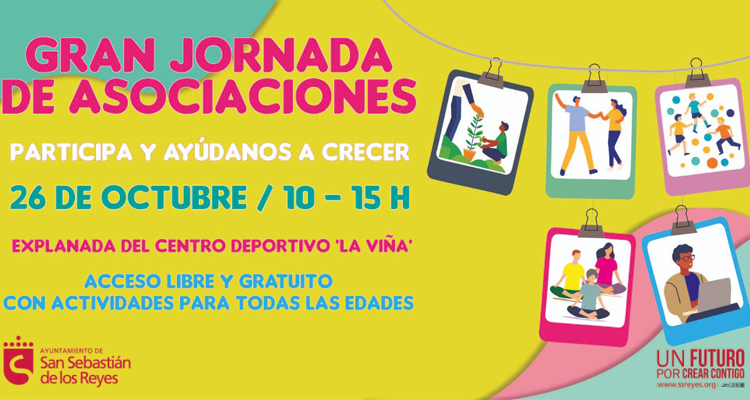 La Jornada de las Asociaciones del próximo sábado 26 de octubre reunirá al tejido asociativo de San Sebastián de los Reyes para celebrar la participación y la unión vecinal. A lo largo de la mañana se sucederá un extenso catálogo de actividades tanto de interacción (baile, yoga, juegos…) como de reflexión y divulgación (charlas, talleres de cuidados…). Además, habrá cuentacuentos, taller de jardinería y numerosos espacios de encuentro para compartir y crear comunidad.