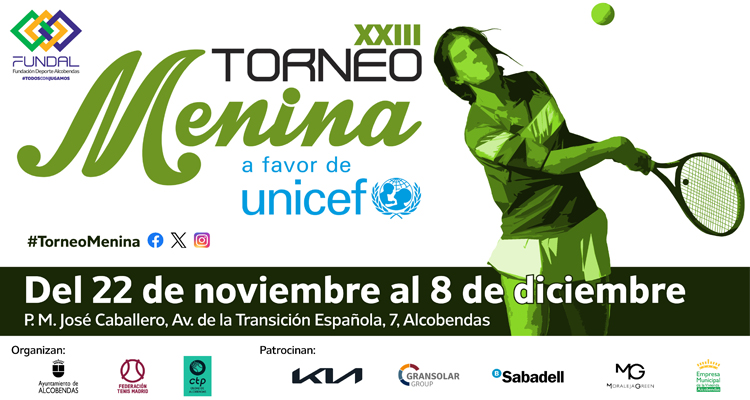 La XXIII edición del Torneo Menina de Tenis Base concluirá este domingo 8 de diciembre, en el Polideportivo Municipal de Alcobendas con la disputa de las finales entre sub8 y sub16, la coronación de los nuevos campeones y campeonas y el gran colofón final que siempre supone el cheque a favor de UNICEF.