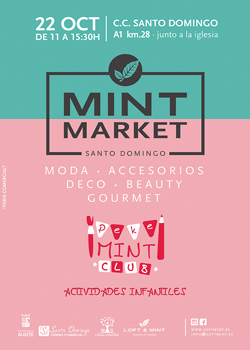MINT MARKET Santo Domingo. Se celebrará los domingos 22 de octubre, 26 de noviembre y 17 de diciembre de 2017, en el Centro Comercial Santo Domingo (junto a la iglesia). A-1, Km. 28. Este evento supone una divertida experiencia al aire libre, ideal para el momento del aperitivo, gracias a que los restaurantes del Centro Comercial Santo Domingo cuentan con terrazas exteriores y propuestas especiales para esos días. XAREL-LO Gastrobar, La Mia Nonna, Tutto´s - Pizzería & Hamburguesería, Basilio Coffee & Pastry Shop, y el restaurante La Plaza de Santo Domingo, ofrecen una variada oferta culinaria a los visitantes del centro comercial y del market. De igual forma, es un plan perfecto para disfrutar en familia, con zona infantil con talleres, actividades y animadores.