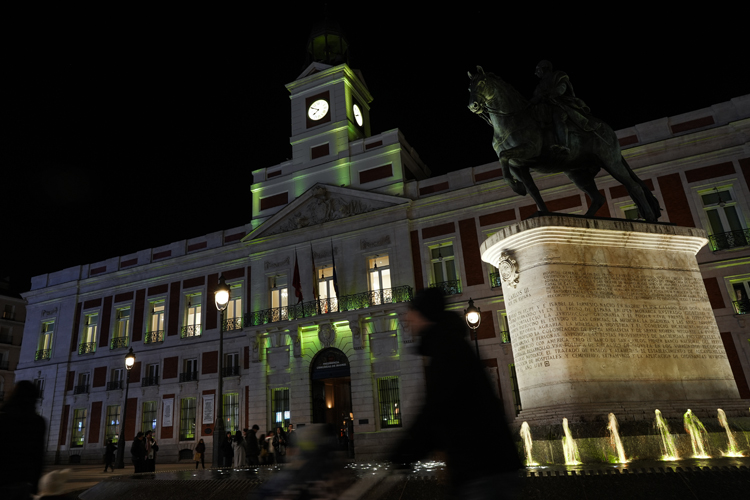 La Comunidad de Madrid ha iluminado hoy de color verde la fachada de la Real Casa de Correos, sede del Gobierno regional, para conmemorar el Día Mundial del Cáncer en Vías Biliares y dar visibilidad a esta enfermedad rara con baja incidencia.