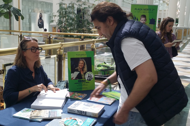 Firma de libros de Odile Rodríguez de la Fuente, bióloga, divulgadora científica